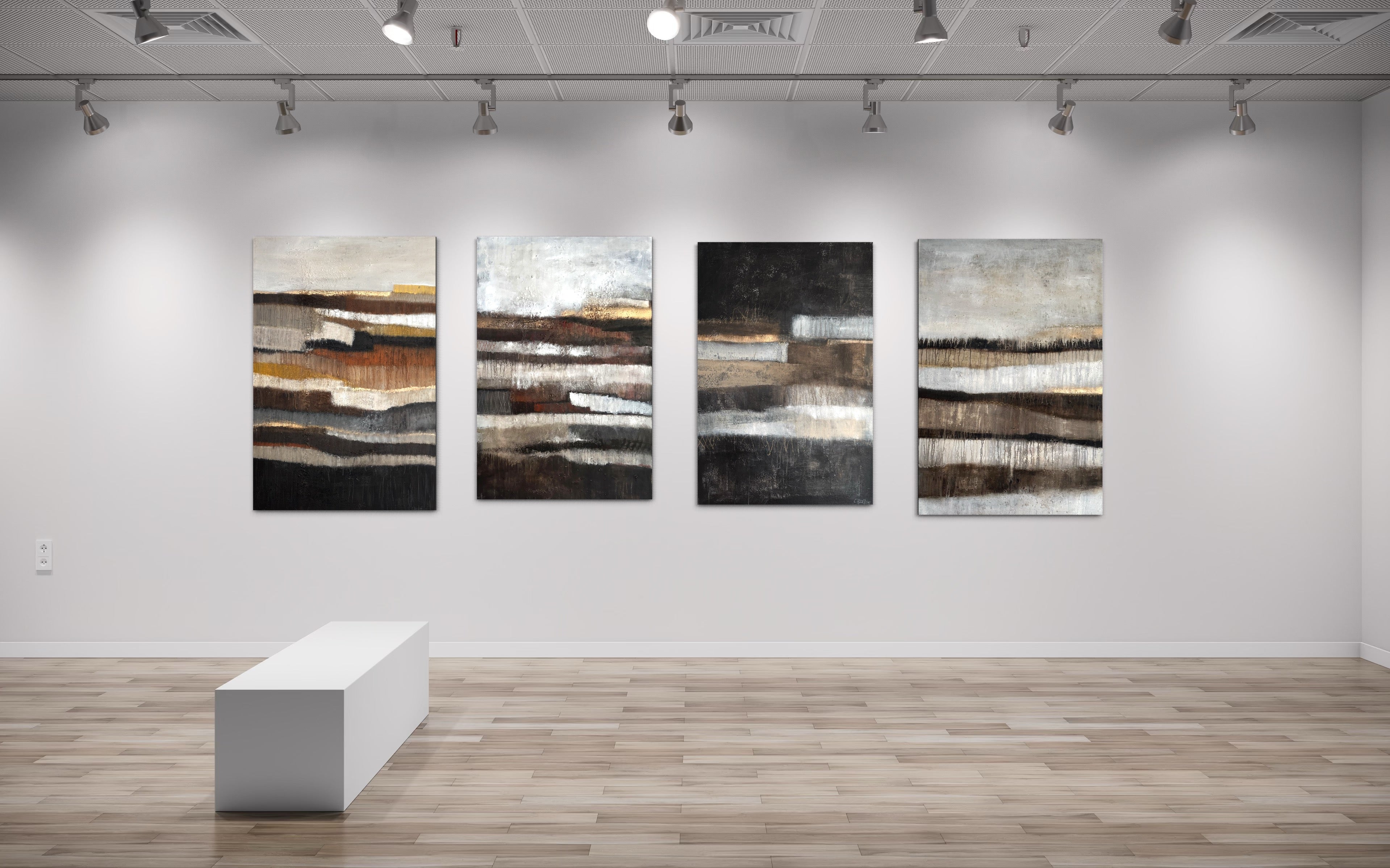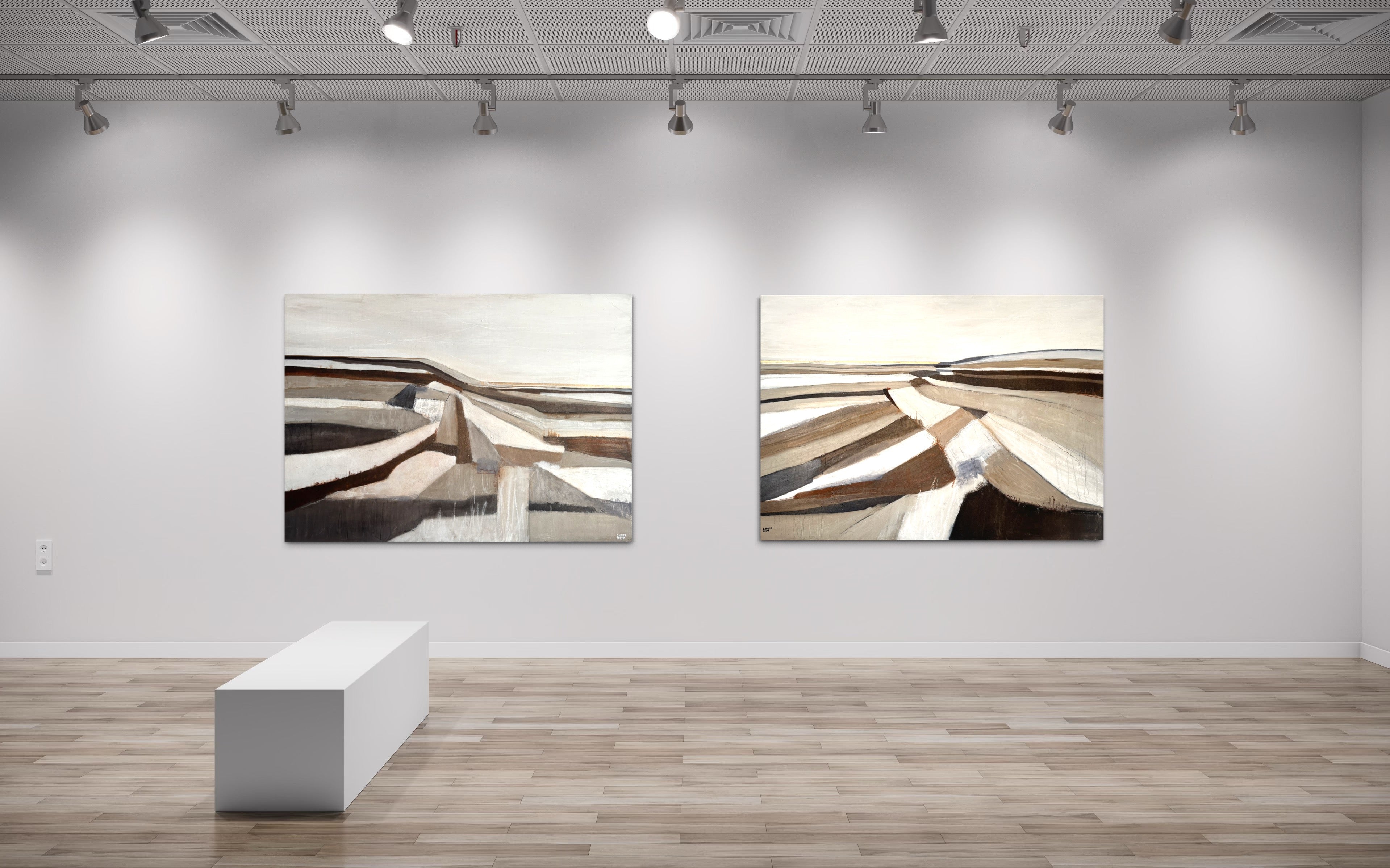 Abstrakte Originale, Schicht für Schicht aufgebaut –aus natürlichen Materialien, mit ruhiger Farbigkeit.
